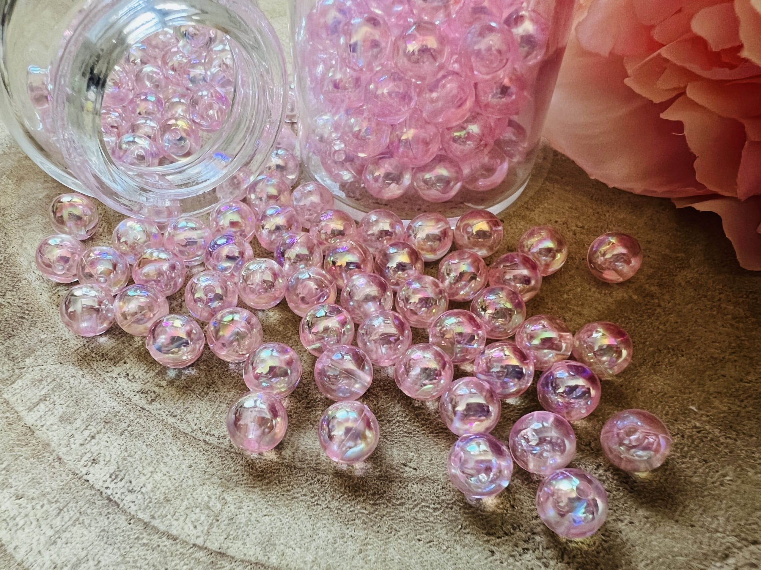 80 Perles Rose Transparente 8 mm