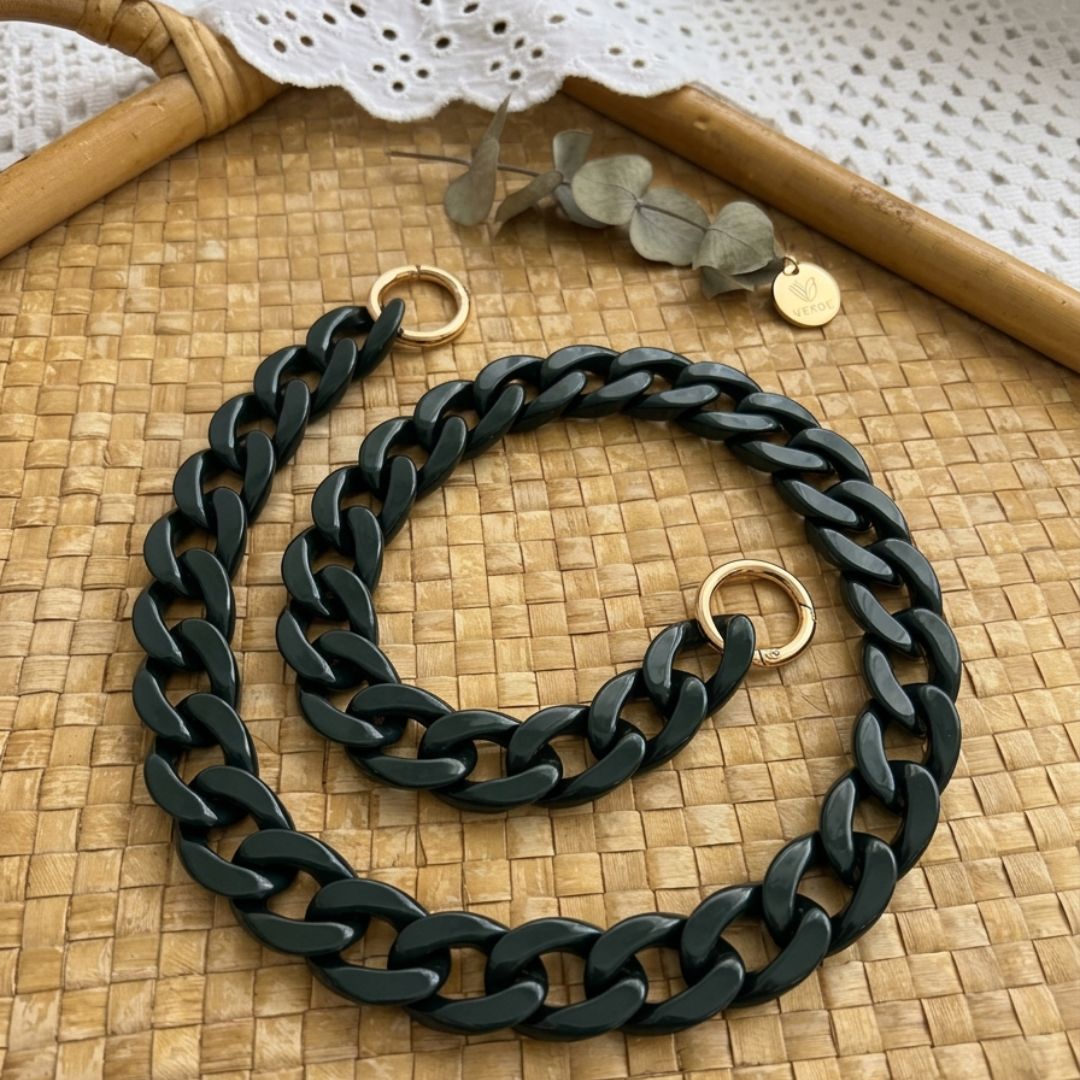 Apportez une touche d’élégance et de caractère à vos créations avec cette anse chaîne vert bouteille de 60 cm. Sa couleur profonde et tendance s’accorde parfaitement avec de nombreux styles de sacs faits main et apporte une finition raffinée à vos projets.