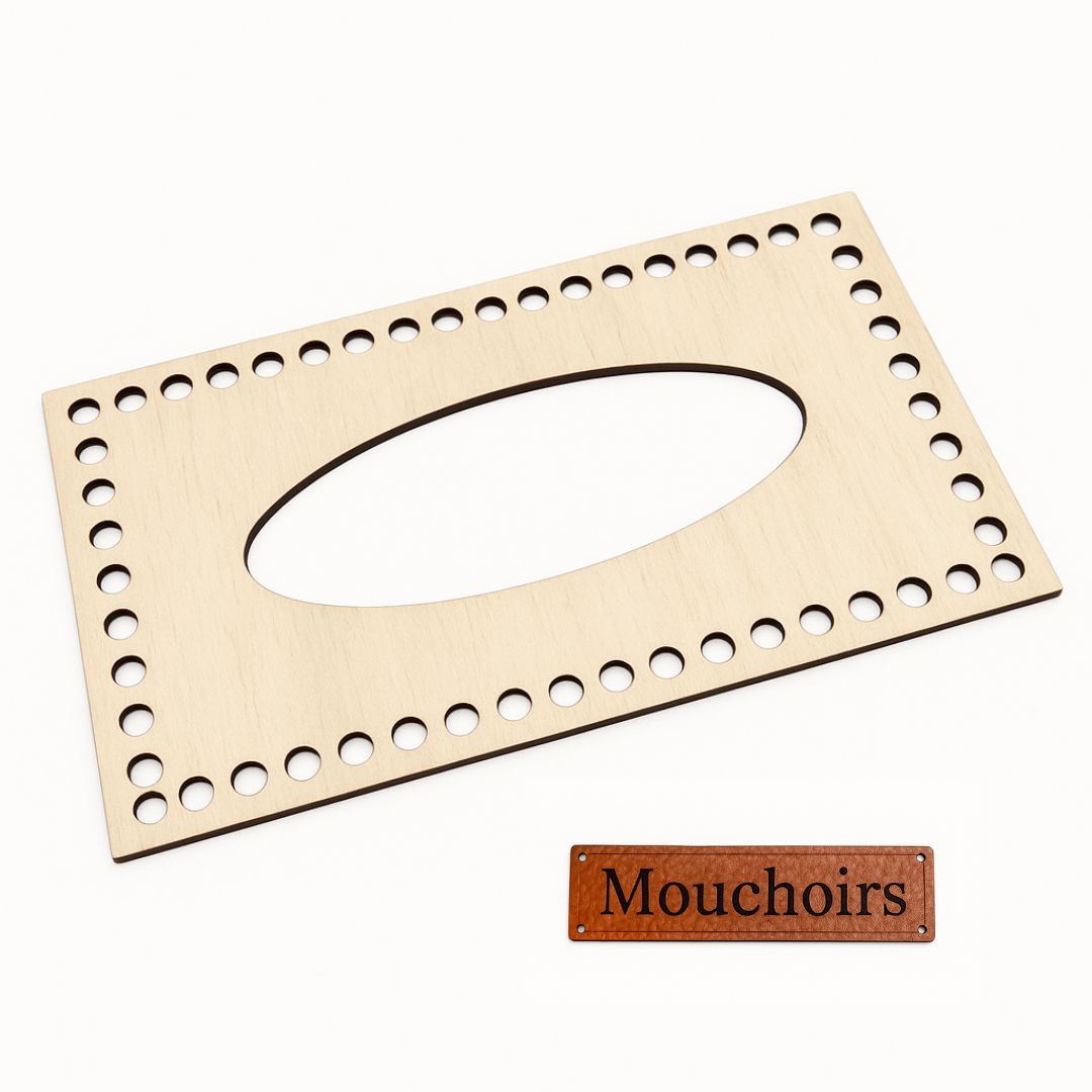 L’ensemble comprend une étiquette en cuir végétal gravée “Mouchoirs”, à fixer pour un rendu élégant et pratique.