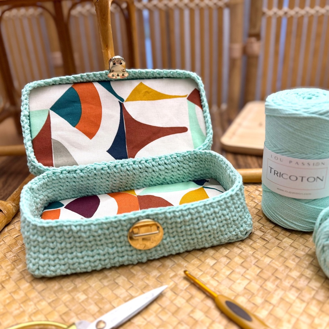 Cette boîte au crochet est idéale pour le rangement de vos accessoires de mercerie, de crochet ou pour un usage décoratif.