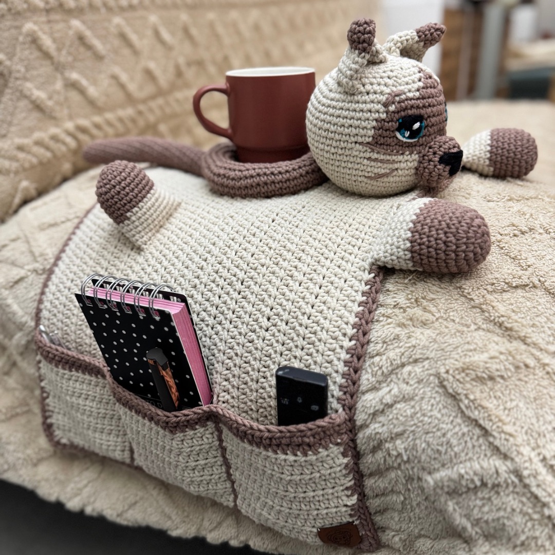 Ce compagnon au crochet est à la fois décoratif et fonctionnel. Ses poches permettent d’y glisser vos accessoires du quotidien — télécommande, carnet, lunettes ou stylo — tandis que sa tête moelleuse peut accueillir votre tasse préférée. Un projet cocooning idéal pour embellir votre intérieur tout en profitant d’un moment créatif.